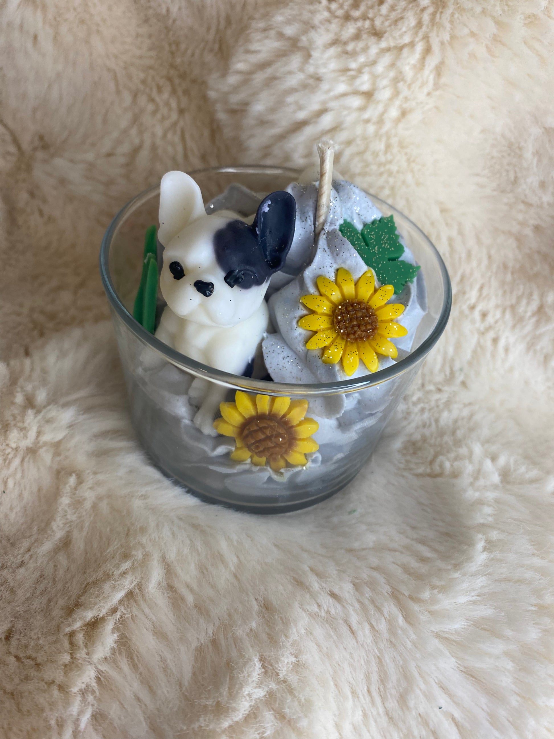 Une bougie bouledogue parfum pomme d'amour