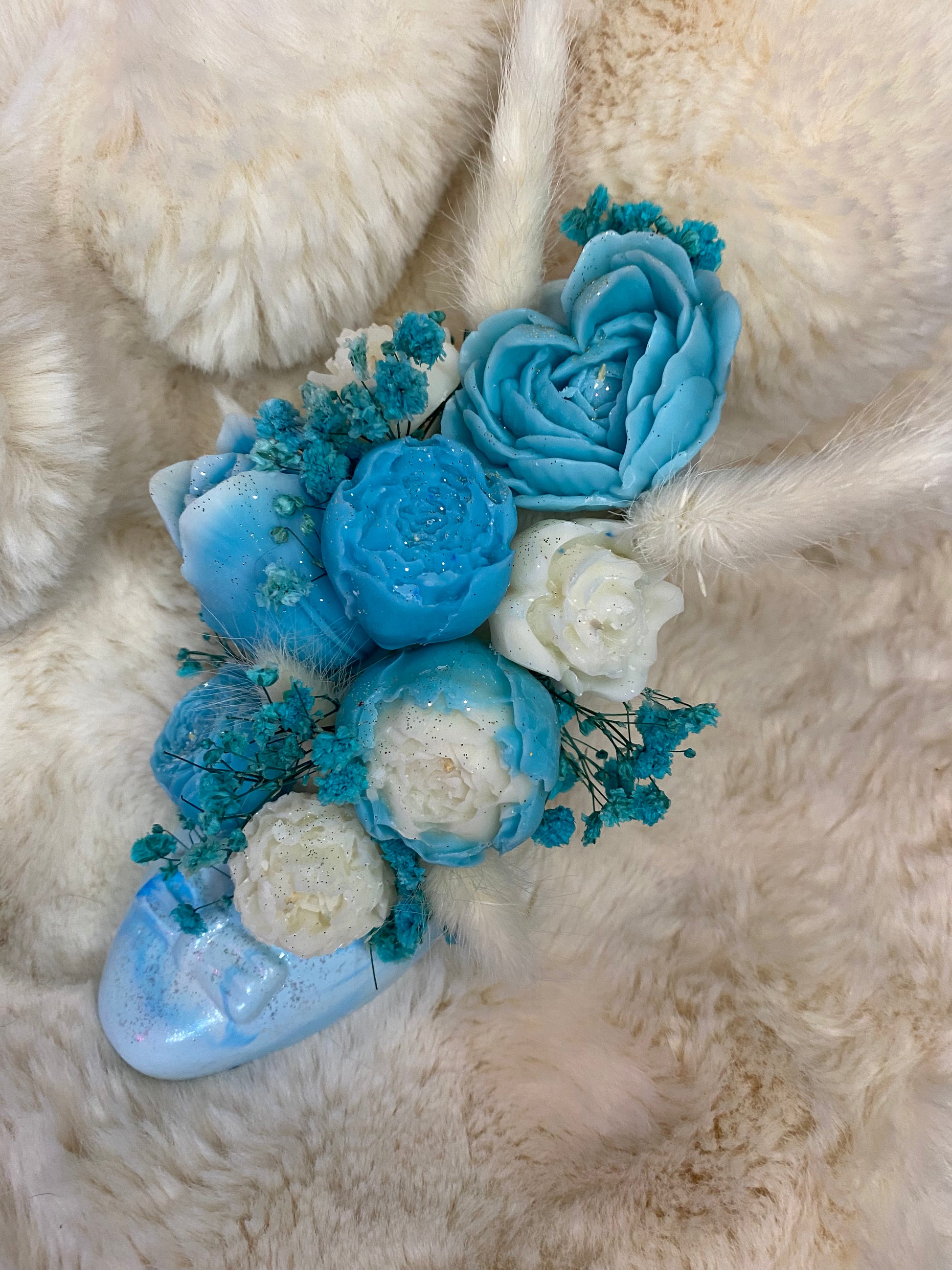 Un bouquet de fondants parfumés dans une chaussure en jesmonite
