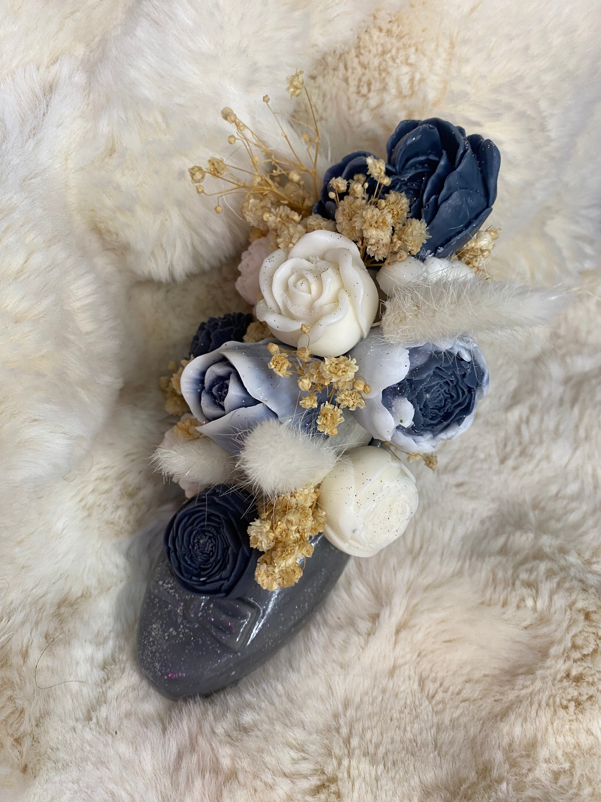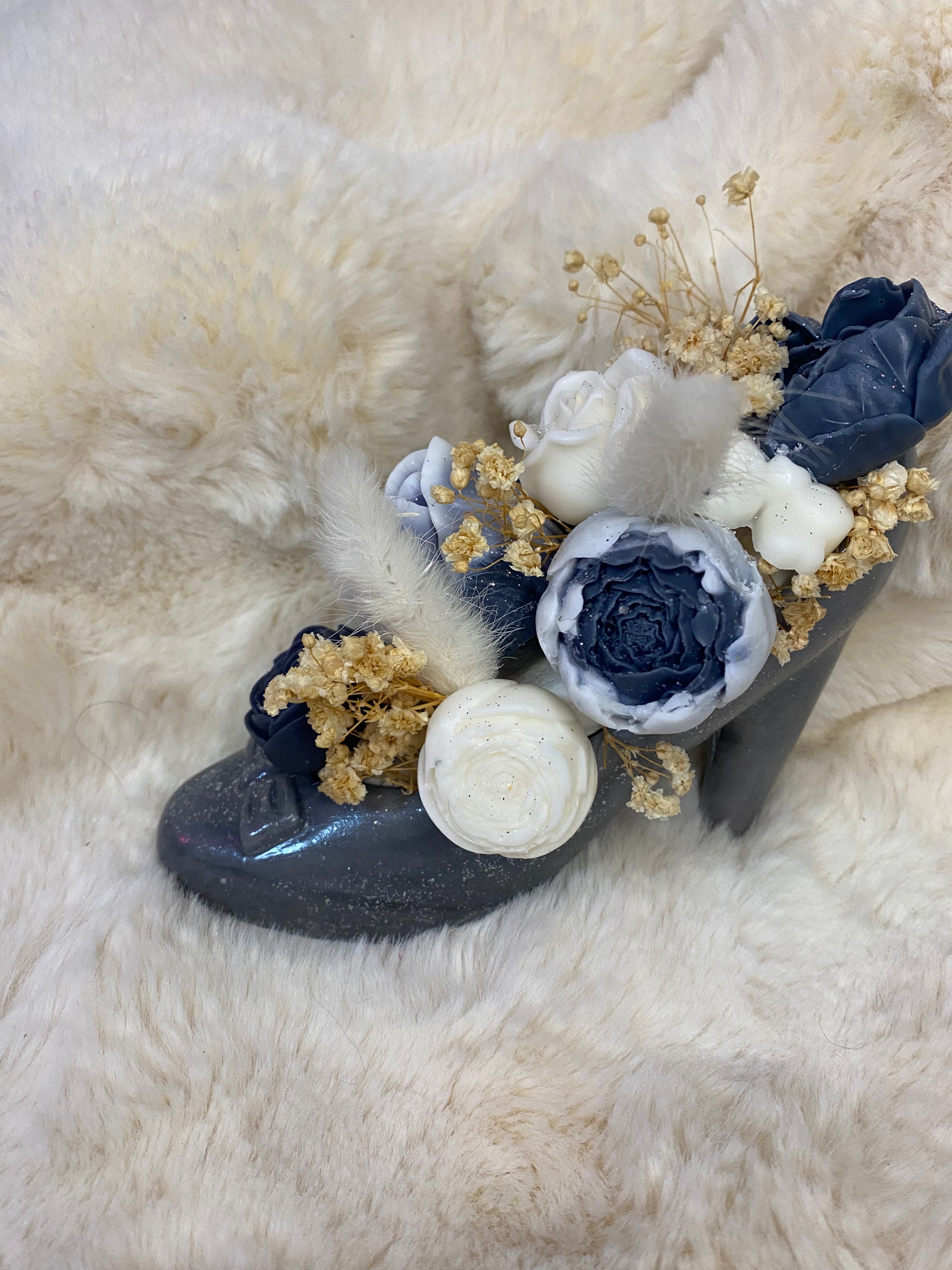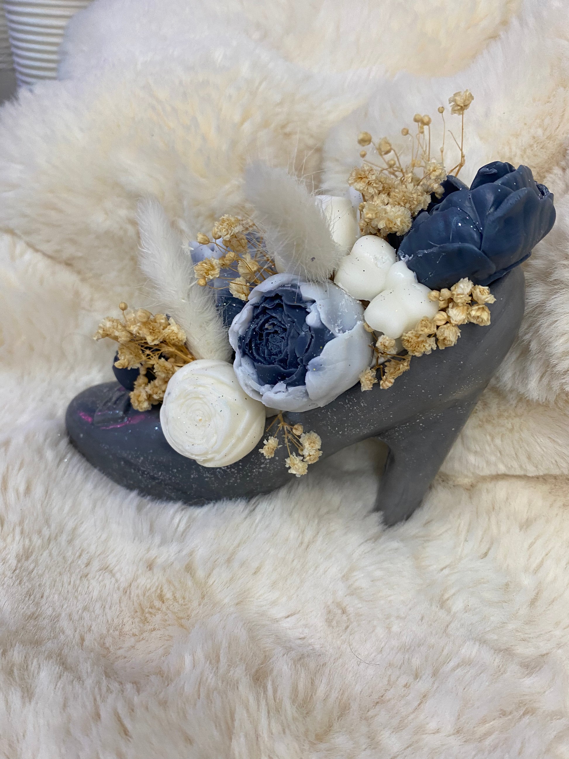 Un bouquet de fondants parfumés dans une chaussure en jesmonite